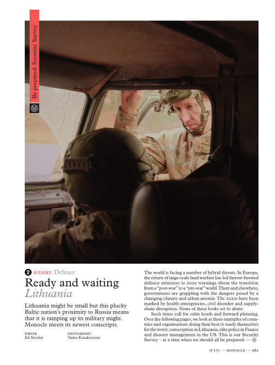 Lithuania might be small but this plucky Baltic nation’s proximity to Russia means that it is ramping up its military might. Monocle meets its newest conscripts.