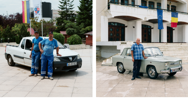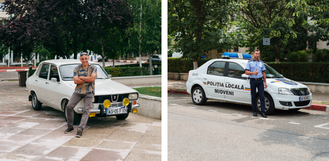 The city of Mioveni is dominated by the St Peter and Paul Cathedral, with its distinct orthodox spires, which sits just off a main thoroughfare. Inaugurated little more than a decade ago, it’s one of the many buildings constructed here since the 1970s – many of them nondescript commu­nist-era blocks – as the population started to grow. Walking around town, the influence of Dacia is difficult to miss. The yellow taxis driving around the streets are Dacias, as are the police cars, both Logan models. The workers in blue overalls fixing up the square arrive in a Dacia pick-up, while a family of three we talk to is driving a workhorse Dacia Solenza from 2003 that needs pushing to get its engine going.